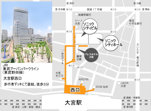 | アクセス | JR大宮駅西口より 徒歩3分 会場はソニックシティビル4F「市民ホール」です。 ※会場では、エレベーターをお控えいただき、エスカレーターをご利用下さい。 |